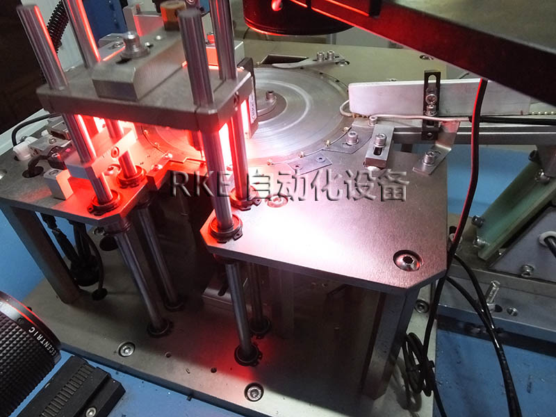 分度盤篩選設備檢測五金螺絲,把在玻璃盤上站立不穩的物件,懸掛起來進行檢測。檢測範圍廣,速度快,精度高